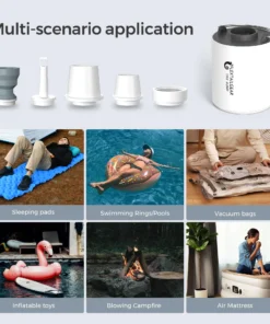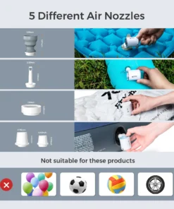 【5 NOZZLES & DIVERSE USE】– Come with 5 nozzles, our small air pump is suitable for most small-large sized inflatable products, such as air mattresses, inflatable beds, pool floats, sleeping pads, swim rings, inflatable furniture, pool inflatables and other inflatable toys. Made of solid ABS material and great sealing technology, this rechargeable air pump is sturdy, well-sealed and durable.