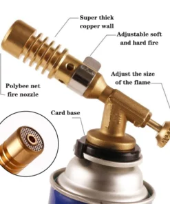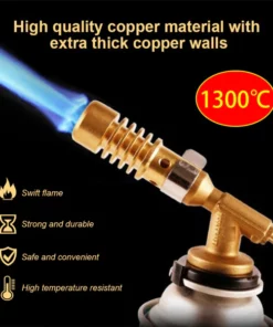 - Adjustable&Continuously Flame Mode– Adjust the temperature range by the GAS button. Adjustable temperature can reach up to 1300 °C/2372 °F. Press the ignition button to light fire, turn the safety lock clockwise at the same time. Then it will keep firing without your pressing. You can achieve one-hand operation.