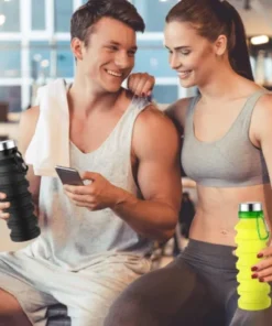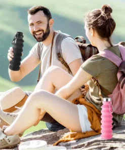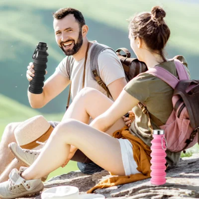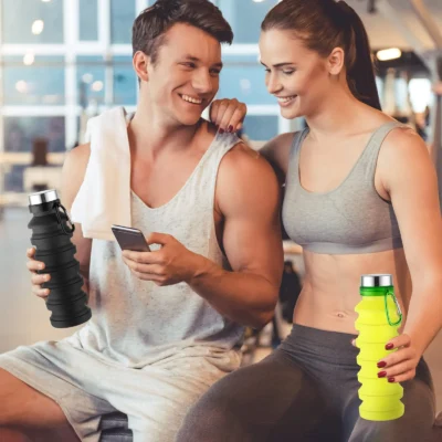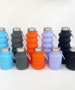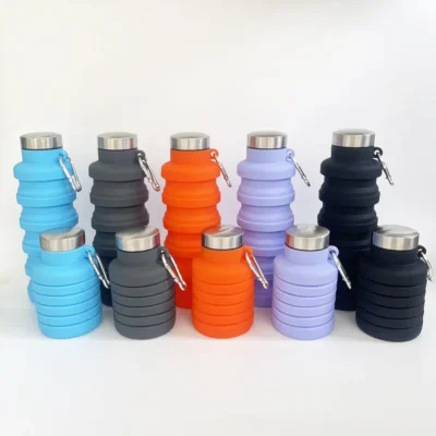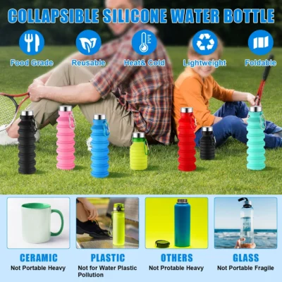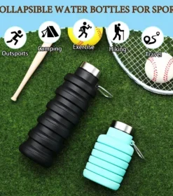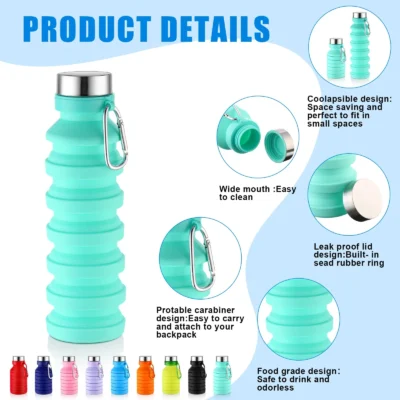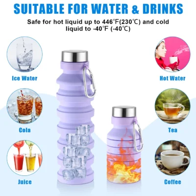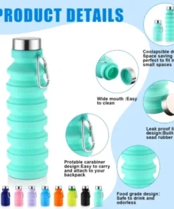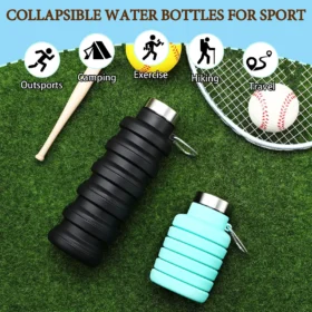 Portable Design: Collapsible and foldable silicone water bottle with carabiner for easy travel and sports