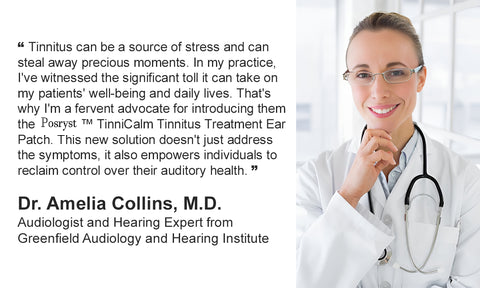 Dr. Amelia Collins, M.D., a renowned audiologist, strongly endorses the Posryst™ Tinnitus Treatment Ear Patch for those suffering from tinnitus. With her extensive experience and research in ear health, Dr. Collins confirms the patch’s efficacy and safety, making it a reliable option for anyone seeking tinnitus relief.