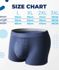 The PowerBoost™ Mens Energy-Enhancing Magnetic Panties have tourmaline material attached to the elastic fiber, creating heat sensations and promoting men’s health. The combination of tourmaline dots and magnets stimulates meridians, enhances blood circulation, and promotes cellular activation. This allows for magnetic energy field therapy benefits without any hassle.