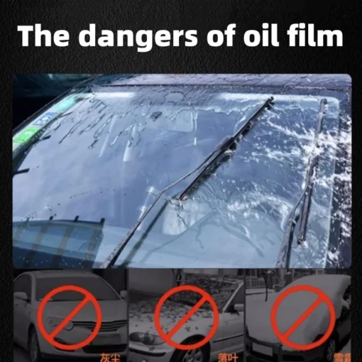 Keep your windshield crystal clear and ensure safer drives with our Powerful Windshield Cleaner & Oil Film Remover. This high-performance formula tackles tough grime and oil, providing unparalleled clarity and cleanliness.