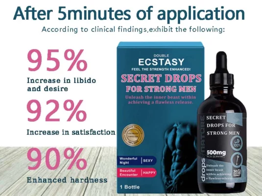 - Embrace the Charm: As you feel the drops unleash their power within, you can start experiencing the captivating effects of Secret Drops for Strong Men, enhancing intimacy in your happy relationship even more.