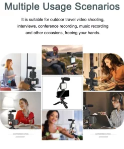 - COMPLETE iPHONE VLOGGING KIT – with Shotgun Microphone, lighting adapter, ultra bright LED light, and adjustable tripod for recording videos, podcasts and vlogs.