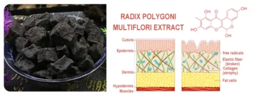 RADIX POLYGONI MULTIFLORI EXTRACT is rich in a variety of active ingredients, such as polysaccharides, proteins and amino acids, which help to promote blood circulation in the scalp and increase the supply of oxygen and nutrients to the scalp, thus promoting hair growth. At the same time, it has a strong antioxidant effect, which can neutralize free radicals, slow down the aging process of the scalp, and protect the health of the scalp. RADIX POLYGONI MULTIFLORI EXTRACT also has anti-inflammatory properties, cleanses and nourishes the scalp, and improves hair texture.