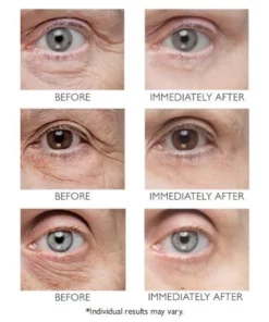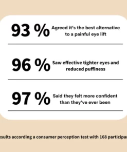 It’s all in the advanced skin-tightening technology. Upon application, the product activates a rapid skin restructuring process, thanks to a unique thermal action that works with your body heat to gently tighten and lift the skin. This cutting-edge approach, designed to deliver immediate results, is like a miniaturized, non-invasive facelift that works in just 10 seconds.