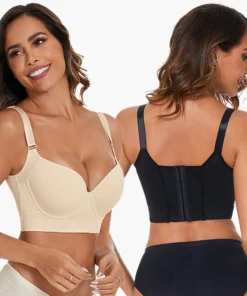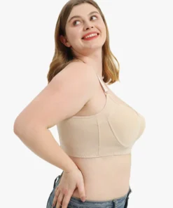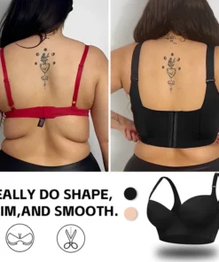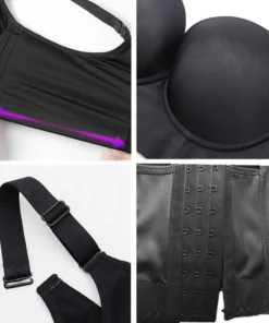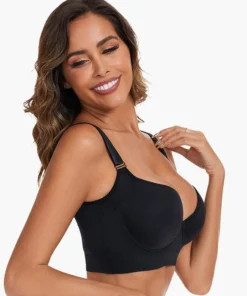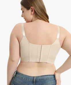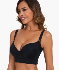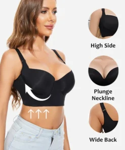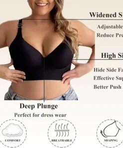 The design of 5D seamed cups, wide side wings, strong cushioned shoulder straps, and U-shape back panel ensures maximum support against sagging while smoothing back bulges and correcting armpit fats for a flattering silhouette.