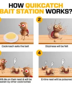 QuikCatch contains an attractive, contagious, and poisonous bait in the form of a gel that infects any cockroach that comes in contact with it and slows down the time it takes to die to ensure that one infected cockroach will be able to spread it to others that get in contact with it thereby killing all cockroach colonies and nests.