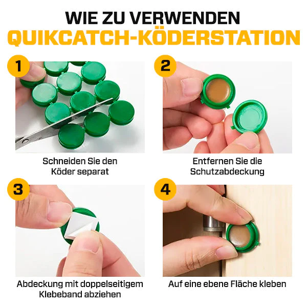 QuikCatch enthält einen attraktiven, ansteckenden und giftigen Köder in Form eines Gels, das jede Kakerlake infiziert, die damit in Kontakt kommt, und die Zeit bis zum Absterben verlangsamt, um sicherzustellen, dass eine infizierte Kakerlake sie auf andere übertragen kann Kommen Sie damit in Kontakt und töten Sie dadurch alle Kakerlakenkolonien und -nester.