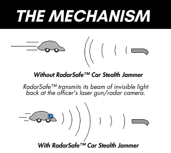 The fundamental concept is straightforward yet revolutionary. RadarSafe™ Car Stealth Jammer not only detects incoming laser beams but goes beyond by decoding the signal and transmitting its beam of invisible light back at the officer’s laser gun/radar camera. This unique technology makes your car practically invisible to the laser, providing you with the ultimate defense against laser speed enforcement.