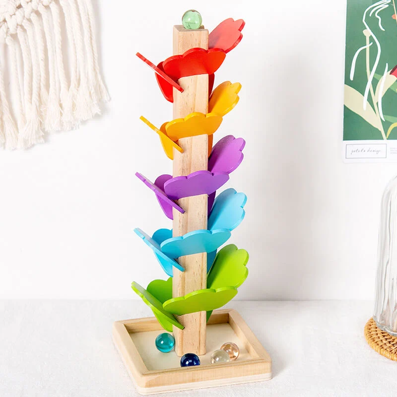 Kids love watching those marbles drop and roll gently down the tree, bringing each leaf to life with its crisp, melodious musical sound.