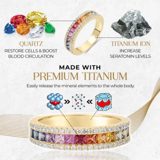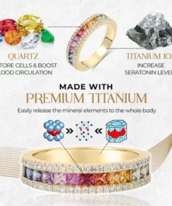The Rainbow Tourmaline Spinning Ring is a natural solution to support metabolism and digestive health. Crafted with natural tourmaline stones, this ring has a fully magnetized strength of 55mT at 10mm intervals. The TitaniumION technology in the neck loop improves blood circulation, metabolism, and vitality. With its natural healing properties, this ring is a safe and non-invasive way to support wellness and boost energy levels.