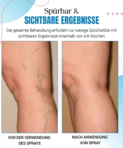 Vergessen Sie invasive Verfahren oder lästige Strümpfe – sprühen Sie einfach und lassen Sie die Magie geschehen. Unsere leistungsstarke Mischung aus klinisch erprobten Inhaltsstoffen stärkt die Venenwände, verbessert die Durchblutung und reduziert Entzündungen, während sie gleichzeitig ein erfrischendes und beruhigendes Erlebnis bietet.