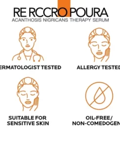 RE RCCRO POURA™ Advanced Skin Brightening Serum for Melanosis and Dark Spot Removal treats hyperpigmentation associated with Acanthosis nigricans, a skin disorder characterized by regions of dark, velvety discolouration in body folds and wrinkles. The serum includes vitamin A that can help to lightens the skin and lessen the thickness of the afflicted skin, which may help to lower insulin level and lighten the dark areas.