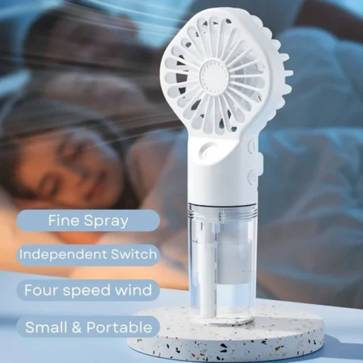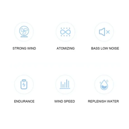 Cool Fine Mist: The portable fan uses advanced water molecule atomization technology to refine and evenly diffuse water molecules into the air, effectively humidifying the air so you can feel hydrated and comfortable all day long.