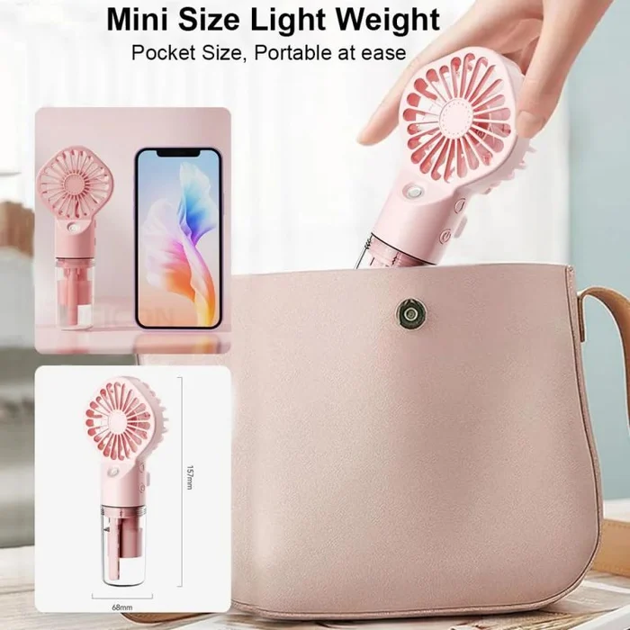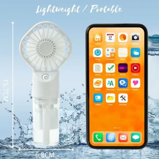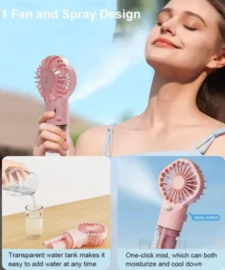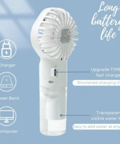 Two-in-One Handheld Portable Fan: This handheld mist fan perfectly combines the two functions of mist and fan. Whether it is a hot summer day or a dry environment, it can bring you a cool breeze and moist water mist, allowing you to enjoy an all-round comfortable experience.