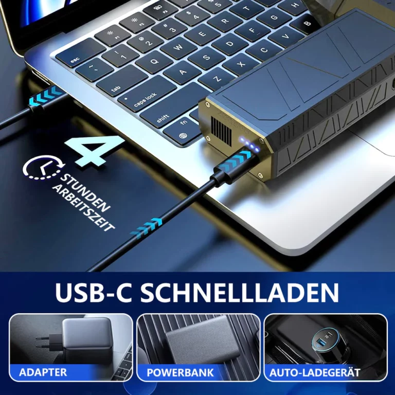 USB-C Schnellladung & 4 Stunden Arbeitszeit