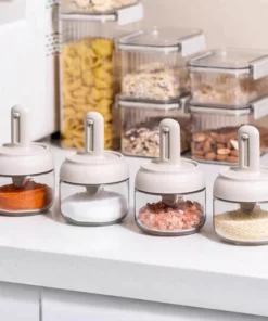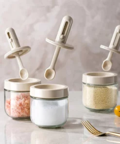 Effortlessly scoop seasonings from the bottom with the integrated retractable spoon. Its rubber-sealed lid keeps contents fresh, while the clear glass design adds elegance. Perfect for storing condiments, spices, and even liquid sauces.
