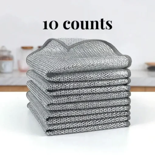 Made from high-quality fabric and silver mesh, each cloth measures 7.87 x 7.87 inches (20 x 20 cm). The diamond-weave pattern creates rich lather, making it easy to remove grease and grime from pots, pans, and other kitchen surfaces. These cloths are designed to withstand repeated use and last longer.