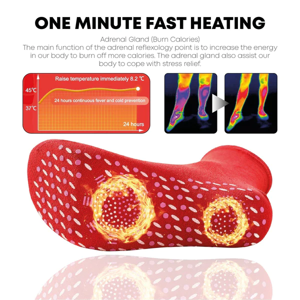 Ricpind AcuSlimming TourmalineHealth Socks are the perfect way to warm your feet and enjoy the relaxing benefits of tourmaline energy. Our socks release far infrared rays which help stimulate blood circulation and aid in weight loss. Not only will your feet feel more relaxed and warmer, but our special wool-blend material will also improve the look of your legs and ankles by slimming down thick ankles.