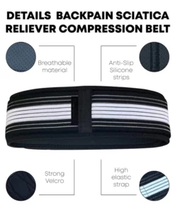 The Ricpind BackPain SciaticaReliever Compression Belt provides stability to the base of your spine and acts as an external ligament to help put the Sacroiliac Joint back into a normal range of motion. At the same time, the double compression zone technology helps decompress the discs, and relieve pressure from the sciatic nerve, thus relieving sciatica pain.