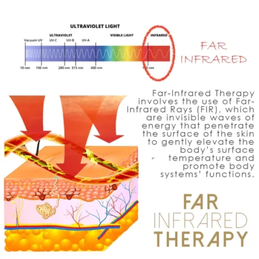 Far infrared is a segment of electromagnetic radiation that can penetrate deep into the body, reaching tissues such as muscles, tendons, nerves, blood vessels, and ligaments after passing through 16 millimeters of subcutaneous tissue. Once it reaches these tissues, it can aid in repairing damaged cells, expanding microvessels, enhancing blood circulation, activating enzymes, and accelerating the metabolism of blood and cell tissues. This is achieved by raising body temperature and promoting physical activity, even during periods of rest.