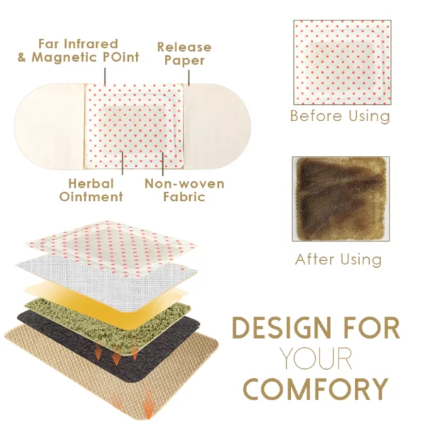 Ricpind BodyDetox Far Infrared Patch is made of high-quality natural ingredients, among which wormwood can effectively reduce swelling; Ginger can promote health, relieve stress and tension, and it can effectively improve mood. The infrared ray penetrates into the body faster and deeper so that the internal metabolism is improved and you can achieve a slim figure in a short time.