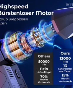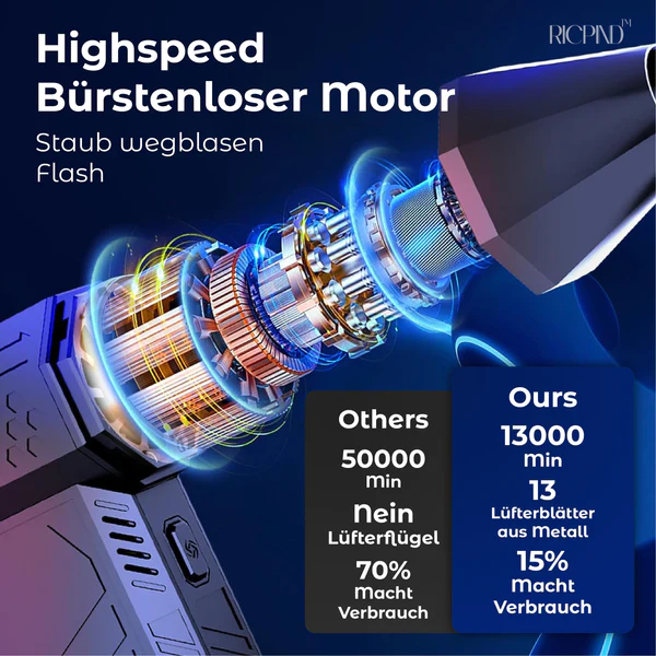 - Effizienter Motor mit hoher Drehzahl (RPM)