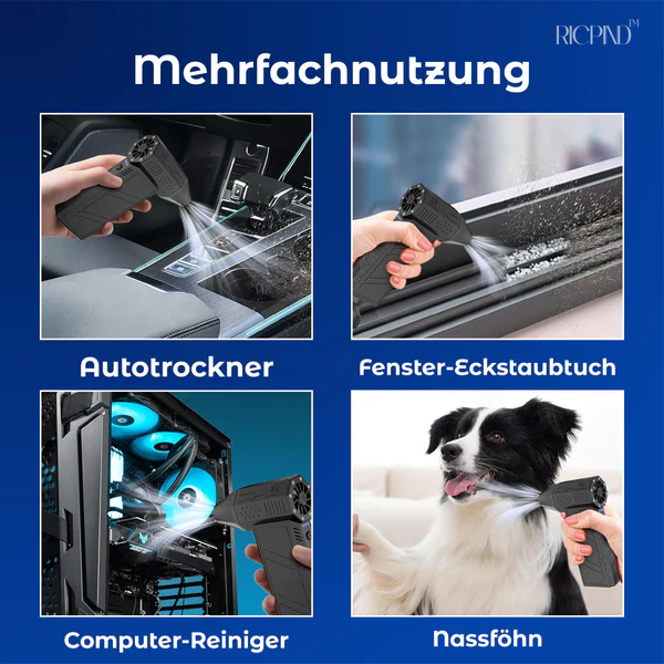 Der RICPIND Elektrische Heißluft Schneekehrmaschine Tragbares Gebläse ist Ihr vielseitiger Reinigungsbegleiter, mit dem Sie schnell verschiedene Aufgaben bewältigen können. Ob Sie Ihren Computer entstauben, den Garten von Laub befreien oder Ihr Auto trocknen, dieses Gebläse liefert sofortige Reinigungskraft. Seine Anpassungsfähigkeit an unterschiedliche Reinigungsanforderungen macht ihn zu einem unverzichtbaren Werkzeug für verschiedene Aufgaben im Innen- und Außenbereich.