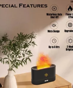 The Flame Aromatherapy Machine boasts a spacious capacity, effectively refreshing and humidifying your living space. Functioning as both an aromatherapy device and a humidifier, it emanates delightful fragrances when infused with essential oils, elevating the overall atmosphere of your home and effectively concealing unwanted odors. Fulfilling the role of a humidifier, it becomes a protective shield during dry seasons, ensuring your family’s well-being by maintaining an optimal level of moisture, leaving your skin consistently moisturized and nourished.