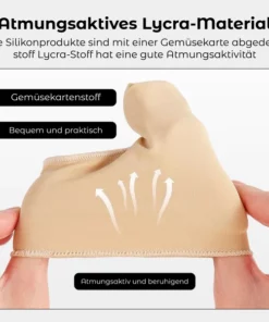 Der RICPIND Hallux Harmonie Korrekturgurt mit Schutzärmeln ist mit innovativen Designmerkmalen ausgestattet, die aus Silikon-Biomaterial gefertigt sind. Dies sorgt für überragenden Komfort, Flexibilität und Langlebigkeit und macht den Gürtel zur idealen Wahl für die Behandlung von Zehenbeschwerden. Erleben Sie den ganzen Tag lang Erleichterung und Unterstützung mit unserer fortschrittlichen Lösung auf Silikonbasis.