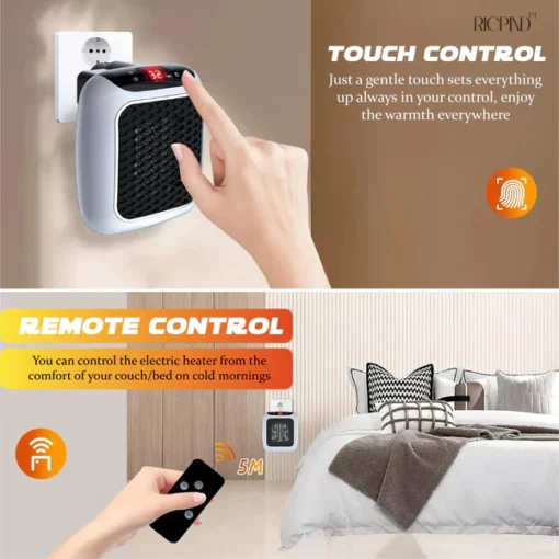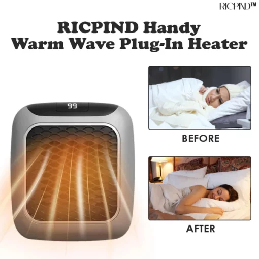 - Once the RICPIND Handy Warm Wave Plug-In Heater is operational, relish the instant comfort it delivers. Sit back, unwind, work, or sleep with peace of mind, as its safety features ensure your safety while you enjoy the inviting ambiance it generates.