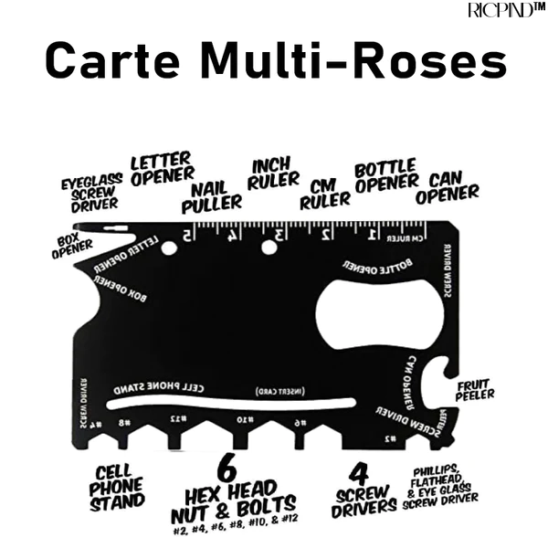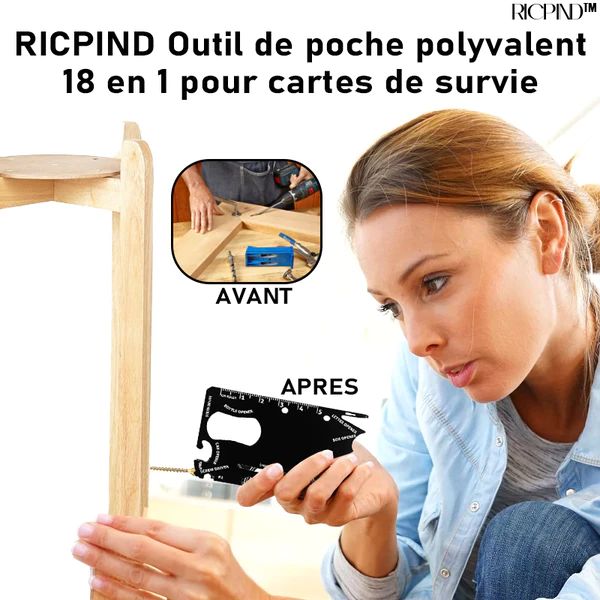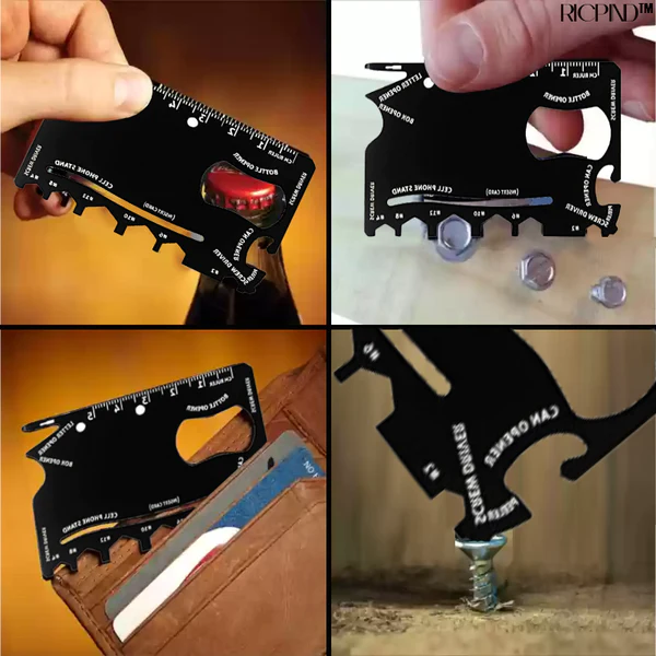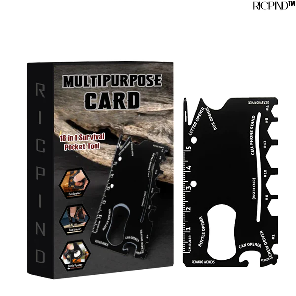 Bei RICPIND finden Sie jeden Tag praktische Essentials, die exklusiv für Sie hergestellt werden. Wir haben das RICPIND Mehrzweck-18-in-1-Survival-Taschenkartenwerkzeug für ultimative Vielseitigkeit entwickelt und 18 Funktionen in einem unverzichtbaren Gerät im Taschenformat vereint. Vom Öffnen von Flaschen bis hin zur Unterstützung bei Reparaturen ist es Ihr kompakter Begleiter für verschiedene Aufgaben.