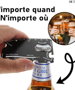 Das multifunktionale 18-in-1-Survival-Taschenkartenwerkzeug von RICPIND ist Ihr ultimativer Überlebensbegleiter und verfügt über 18 vielseitige Funktionen. Vom Öffnen von Flaschen, Dosen und Schachteln bis hin zum Brieföffner und Obstschäler ist es voller praktischer Funktionen. Es enthält außerdem Schraubendreher, Inbusschlüssel, einen Handyständer, Glasschraubendreher und ein Lineal und bietet so eine Fülle von Nützlichkeiten in einem kompakten Design.