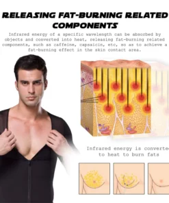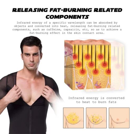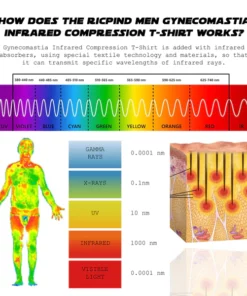 Infrared energy of a specific wavelength can be absorbed by objects and converted into heat, releasing fat-burning related components, such as caffeine, capsaicin, etc., which then release their active ingredients into the skin contact area to achieve a fat-burning effect. Ricpind Infrared Compression T-Shirt is designed to help with Gynecomastia. This item utilizes an advanced infrared heating system, combined with a slimming compression shirt, to burn calories and shed pounds by stimulating your body to burn fat even when you are not exercising. By heating up the body, this product accelerates your metabolism and improves the activity of your heart, liver, and spleen.