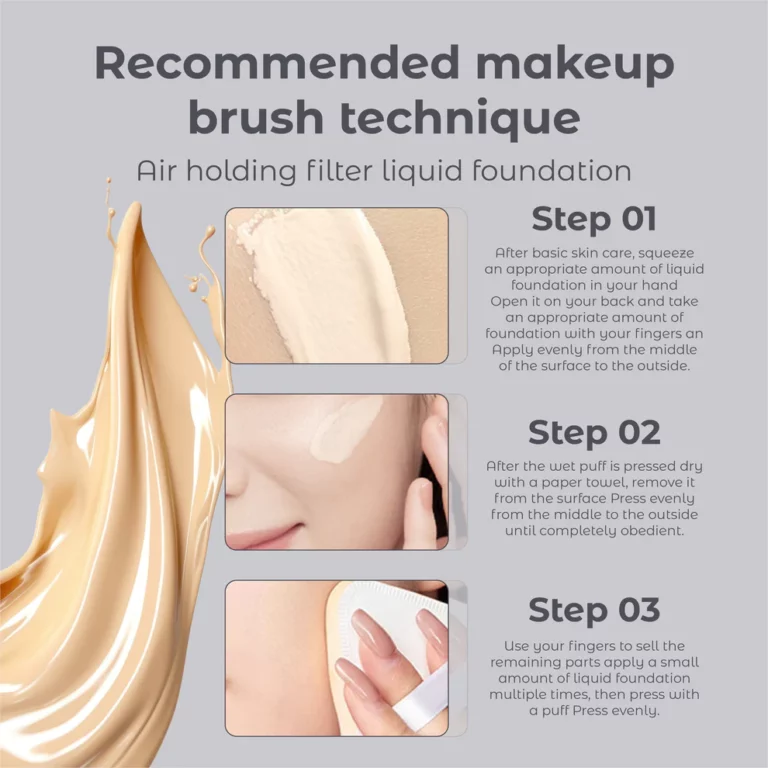 - Start with your basic skincare routine, then put a bit of liquid foundation on your hand. Use your fingers to take some foundation and apply it evenly from the center to the outer parts of your face.