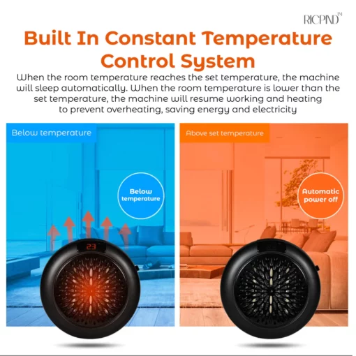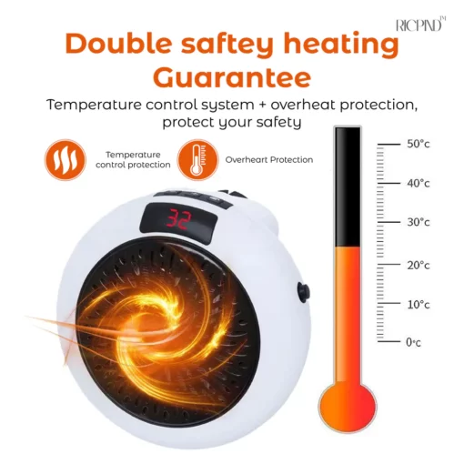 Effortlessly warm up any space with the RICPIND Pro900 Portable Wall Outlet Heater. Plugging in at 900 watts, its innovative PTC technology optimizes energy use for cost-effective heating, delivering comfort without excessive power consumption. Compact, portable, and smartly designed to fit any outlet – your go-to solution for efficient, cozy warmth!