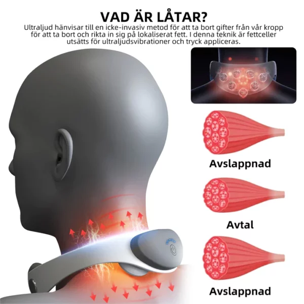 - Använder riktad ultraljudsteknik för att stimulera akupunkturpunkter på nacken.