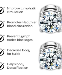 These earrings are crafted with the intention of potentially enhancing the function of the lymphatic system. Through the use of innovative materials, they aim to support the body’s natural lymphatic processes, potentially leading to improved overall well-being. Wearing them may offer subtle yet beneficial effects on lymphatic system functionality.