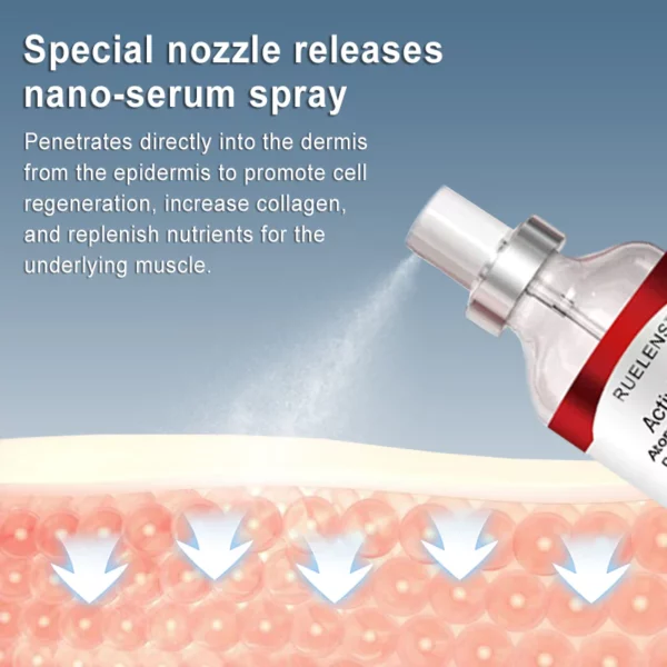 Special nozzle: RUELENS™ ActivYouth Atomized Collagen 3 Retinol Spray Serum uses a special nozzle that releases a nano-mist with a 0.2mm nozzle, allowing the serum to penetrate deep into the skin, regulating the skin’s water-oil balance, soothing the skin’s stress, combating allergies, and increasing the skin’s natural protective functions. RUELENS™ ActivYouth Atomized Collagen 3 Retinol Spray Serum is small in size, making it easy to moisturize your skin anytime, anywhere.