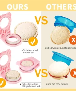 Unlike other bread cutter for kids, our sandwich sealer and decruster is made of food grade 430 stainless steel with comfort PP grip and smooth cut edge to protect hands from harm, easy to cut and demold, no rust, no crack, more durable and reusable to use. Upgraded sandwich sealer features a serrated design to tightly seal the fillings and prevent them from leaking.