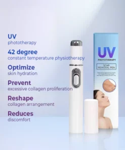 Our product uses 42-degree constant temperature physiotherapy for total scar reduction. As you place the UV light scar pencil on the affected area, the safe and controlled UV light prevents excessive collagen proliferation that makes up a scar.