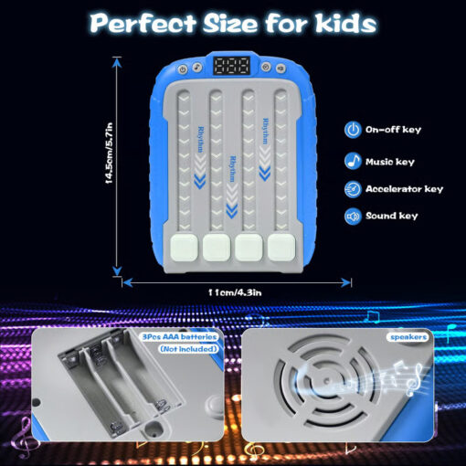 Runs on 3 AAA batteries (not included), making the Screen-Free Music Game ideal for travel and on-the-go fun.