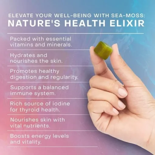 - Delicious & Convenient – Enjoy the benefits of sea moss in a tasty, candy-like gummy that’s easy to take on the go.