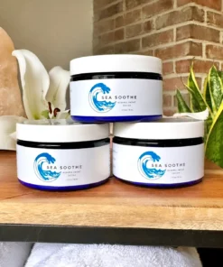 A: While not a medical treatment, Sea Soothe’s ingredients can help ease symptoms associated with eczema, psoriasis, and general dryness by soothing inflammation and strengthening the skin barrier.