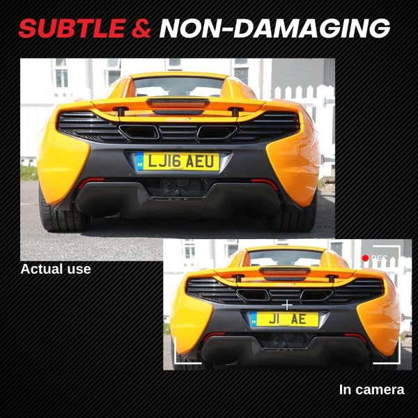 ✔ Subtle and Non-Damaging Installation: Effortless to install, ultra-thin (0.18 mm), seamlessly blending with your license plate, and virtually unnoticeable.