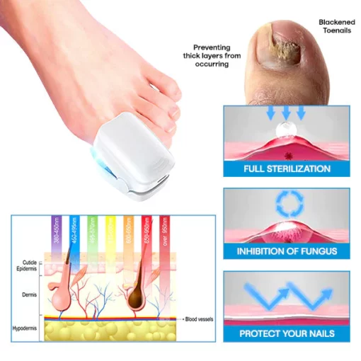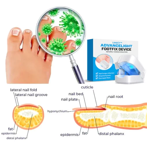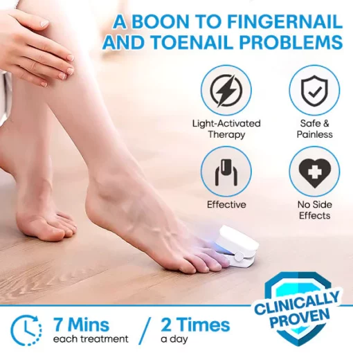 The revolutionary, highly efficient Seurich™ Pure Advance Light FootFix Device uses blue light therapy in combination with infrared cold laser technology to effectively eliminate fungi, inhibit inflammation and prevent infections. This relieves nail pain and swelling, eliminates pus or pustules, inhibits itching, peeling, thickening of nails and other problems.