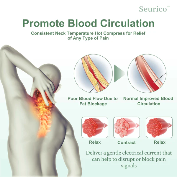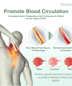 The Seurico™ Acupuncture Acupoint Lymphatic Sedation Neck Apparatus improves blood circulation to vital organs and tissues throughout the body by emitting electrical waves that help dissolve blockages such as narrowed blood vessels and treat abnormalities such as plaque or embolism.