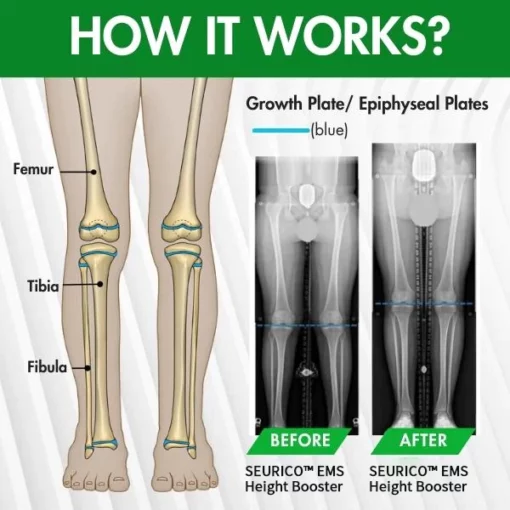 After reaching puberty, the growth plates in our bones cease to produce new growth, as they fuse together, leading to a halt in height increase. Consequently, once an individual reaches 18 years of age, further height growth becomes impossible. However, there is good news! Introducing Seurico™ EMS Height Booster, a revolutionary solution designed to address this limitation.