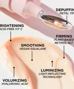 - Formulated with magnesium ascorbyl phosphate, hyaluronic acid, squalane, simmondsia chinensis and optical brighteners (mica)